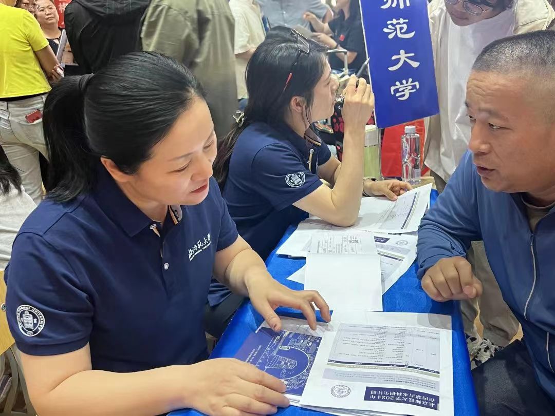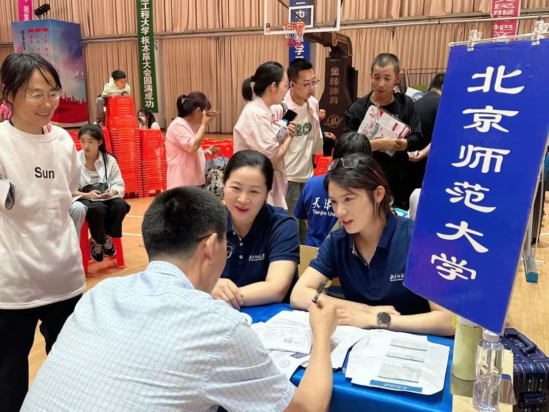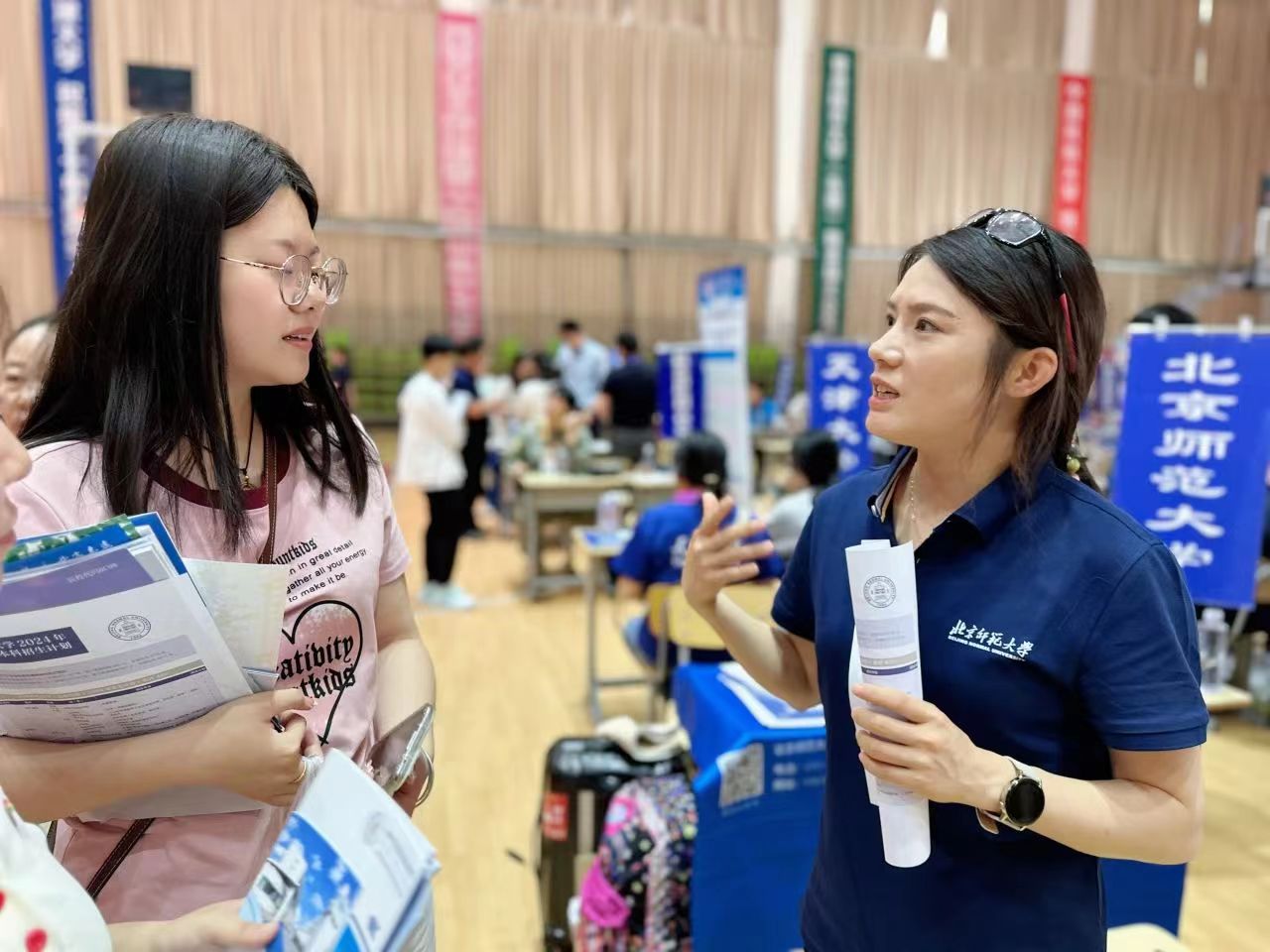 工作组于25日上午8:30到达集宁一中霸王河校区,在完成布置场地、粘贴宣传海报、资料分类整理等各项准备工作后,9:00正式开始宣传咨询工作,数百名应届毕业生和家长以及该校高二年级学生及家长参加了咨询活动,现场气氛热烈。工作组协调分工、高效合作,详细介绍了北师大的办学实力、招生政策、人才培养举措等情况,并回答了大家关心的强基计划、公费师范生政策、毕业生去向等问题。对重点学生及家长,工作组进行了详细推介和记录等工作,在完成资料分发、咨询解答、考生登记表收集等工作后,咨询工作在上午12点结束。