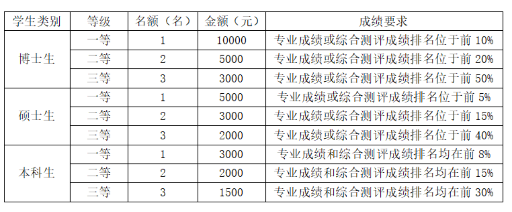 二、奖学金项目设置